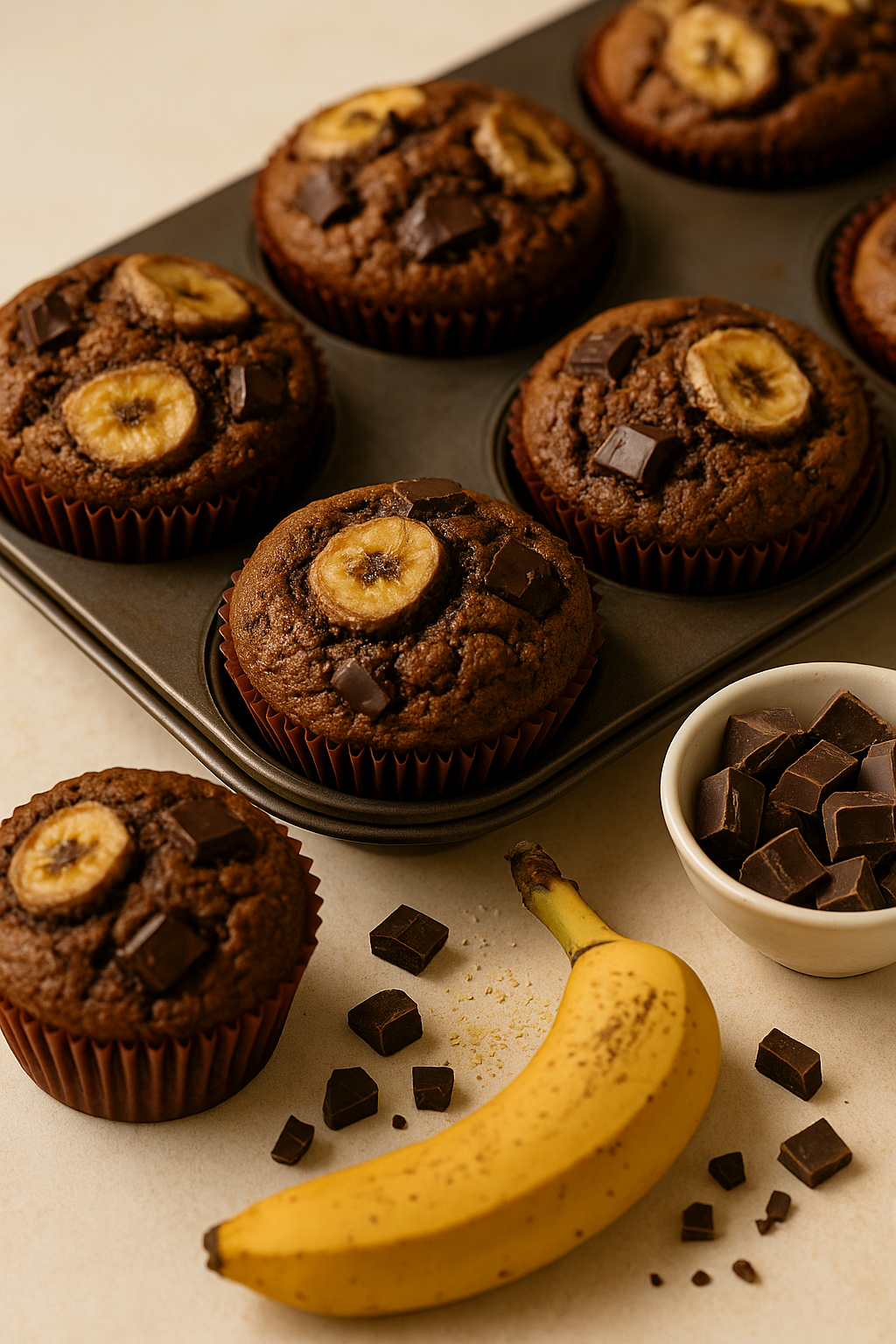 🍫 Dunkle Schokoladen-Bananen-Muffins